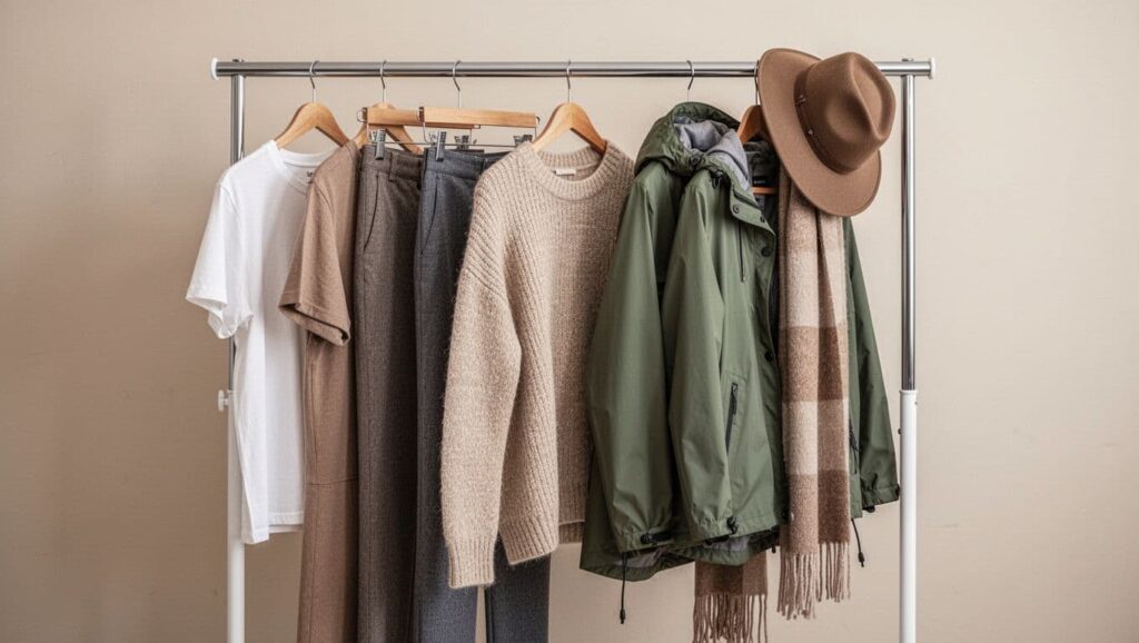 कपड़े दिनों के हिसाब से नहीं, आउटफिट के हिसाब से चुनें। एक ऐसा आउटफिट रखें जो ट्रैवल डे पर आराम दे। फिर 1 से 2 ऐसे आउटफिट रखें जो दिन और शाम दोनों में चल जाएं। इनरवियर और मोजे जरूरत के हिसाब से रखें, लेकिन “हर दिन नया” वाली सोच अक्सर बैग भारी कर देती है।